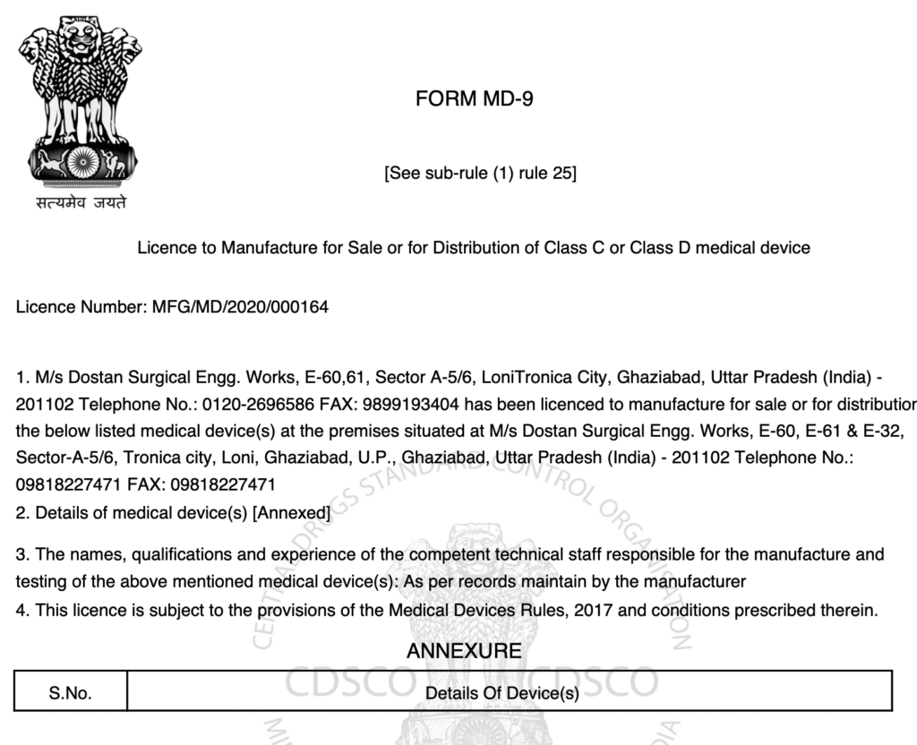 Manufacturing License