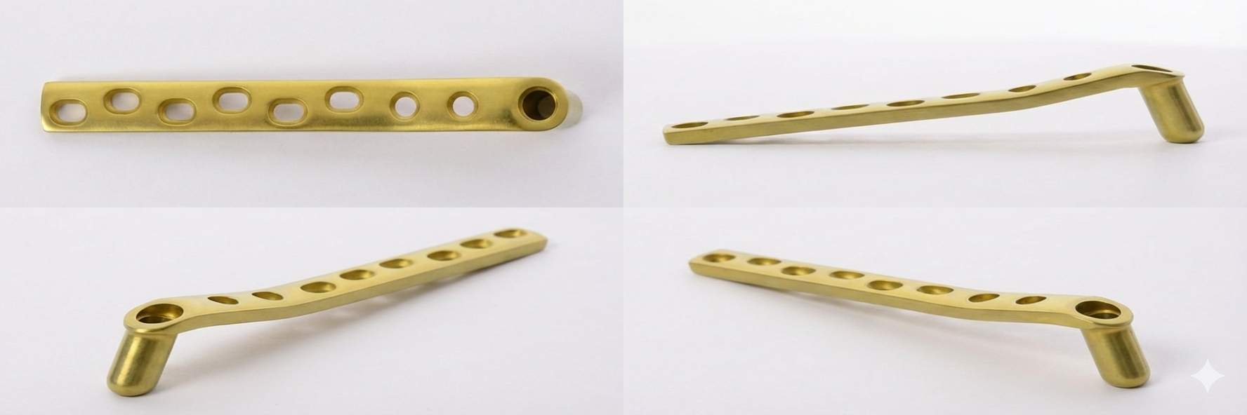 Material 316L SS / Titanium | Angle 95° | Holes 4H | Finish Matte | Codes SS 308.04 | TIT 308.04 TI | Cert ISO 13485 CE