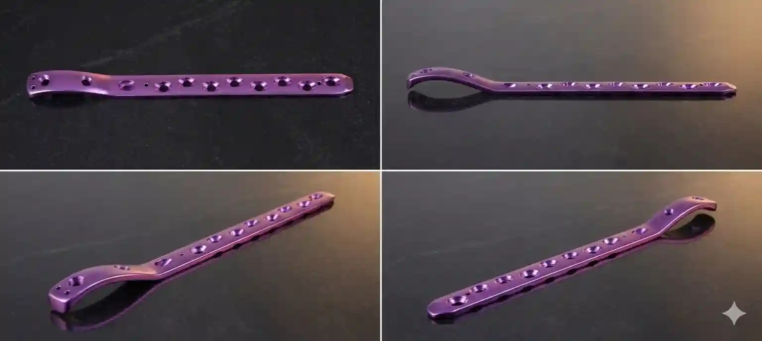 Material 316L SS / Titanium | Angle 130° | Side L/R | Length 90–150 mm | Codes SS 151.03L–151.07R | TIT 151.03L TI–151.07R TI | Cert ISO 13485 CE